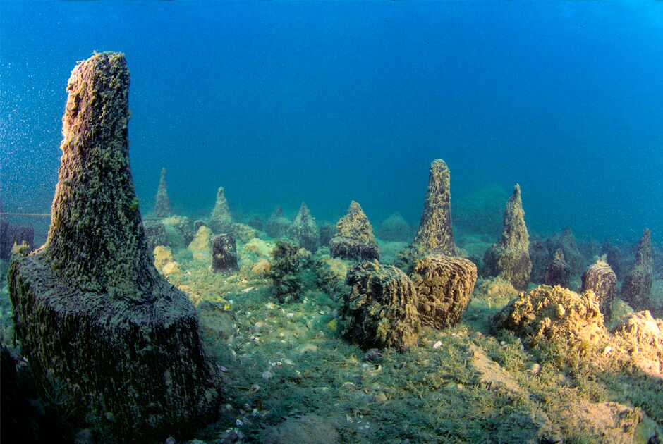Die unter Wasser liegende Pfahlbausiedlung „del Belvedere“ liegt etwa 250 Meter vom Ufer entfernt im See. Die Fundstelle erstreckt sich über mehr als 22.000 Quadratmeter und liegt direkt vor dem Südufer des Gardasees. Die Aufnahme des ausgedehnten Pfahlfeldes umfasste etwa 1.200 vertikale Pfähle, die aus dem Seegrund herausragen. Das gesammelte Material und die durch die Untersuchung gewonnenen Daten haben es bisher ermöglicht, mindestens zwei verschiedene Phasen der Besiedlung und Entwicklung der Fundstelle zu identifizieren: Die erste stammt aus dem 21. bis 20. Jahrhundert v. Chr., d. h. aus der frühen Bronzezeit; die zweite aus dem Ende des 17. Jahrhunderts v. Chr., also aus der Übergangszeit zwischen der frühen und der mittleren Bronzezeit.